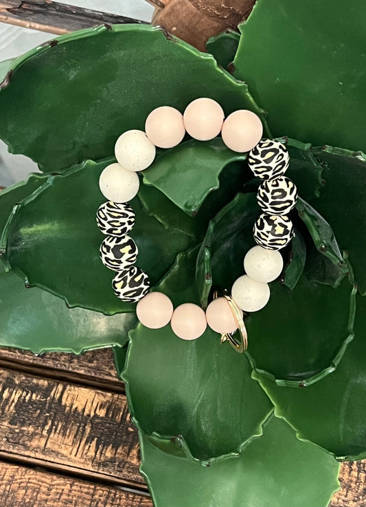 Wood Bead Leopard Wristlet Keychain