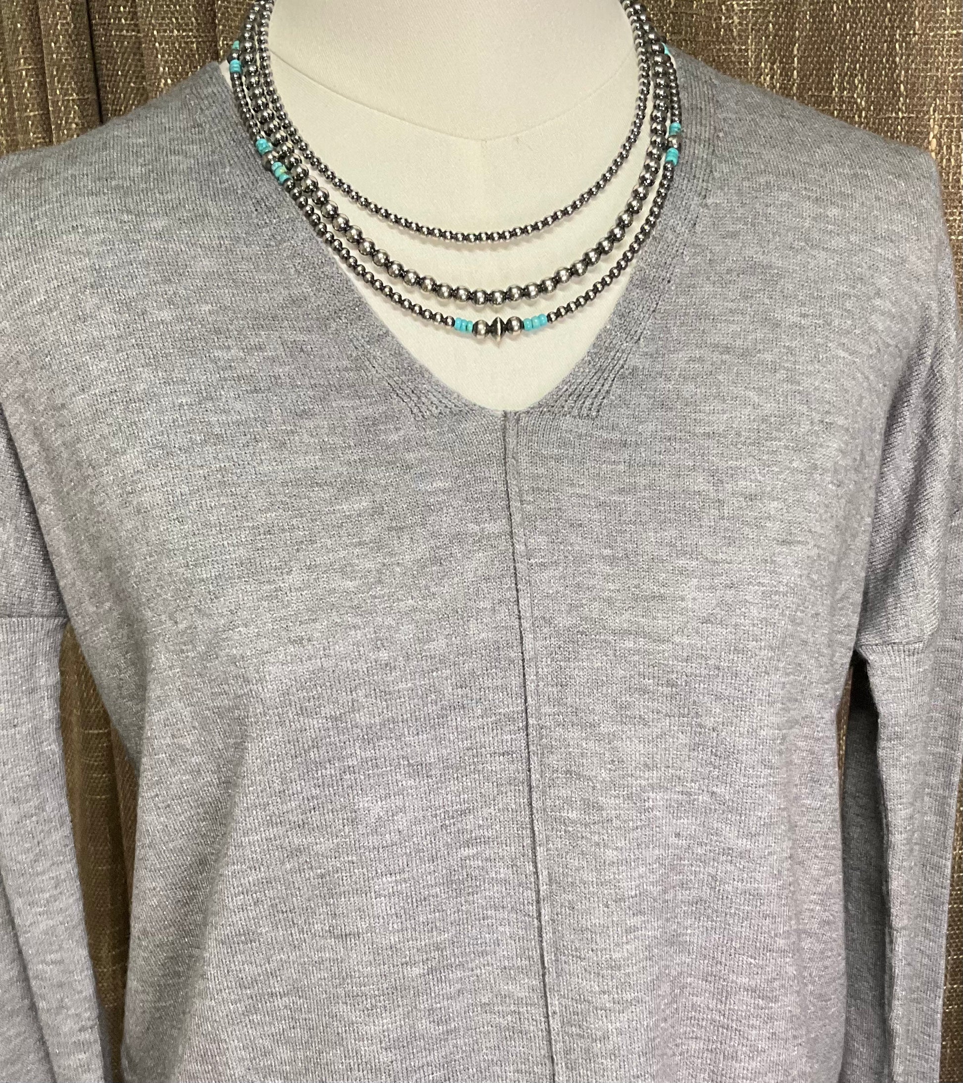 Wrap yourself in comfort and timeless style with the Allison V-Neck Sweater. Crafted from luxuriously soft fabric, this long-sleeve essential features a chic exposed seam detail along the front for a subtle yet eye-catching touch. The split bottom hem offers a flattering fit, perfect for layering or wearing on its own.