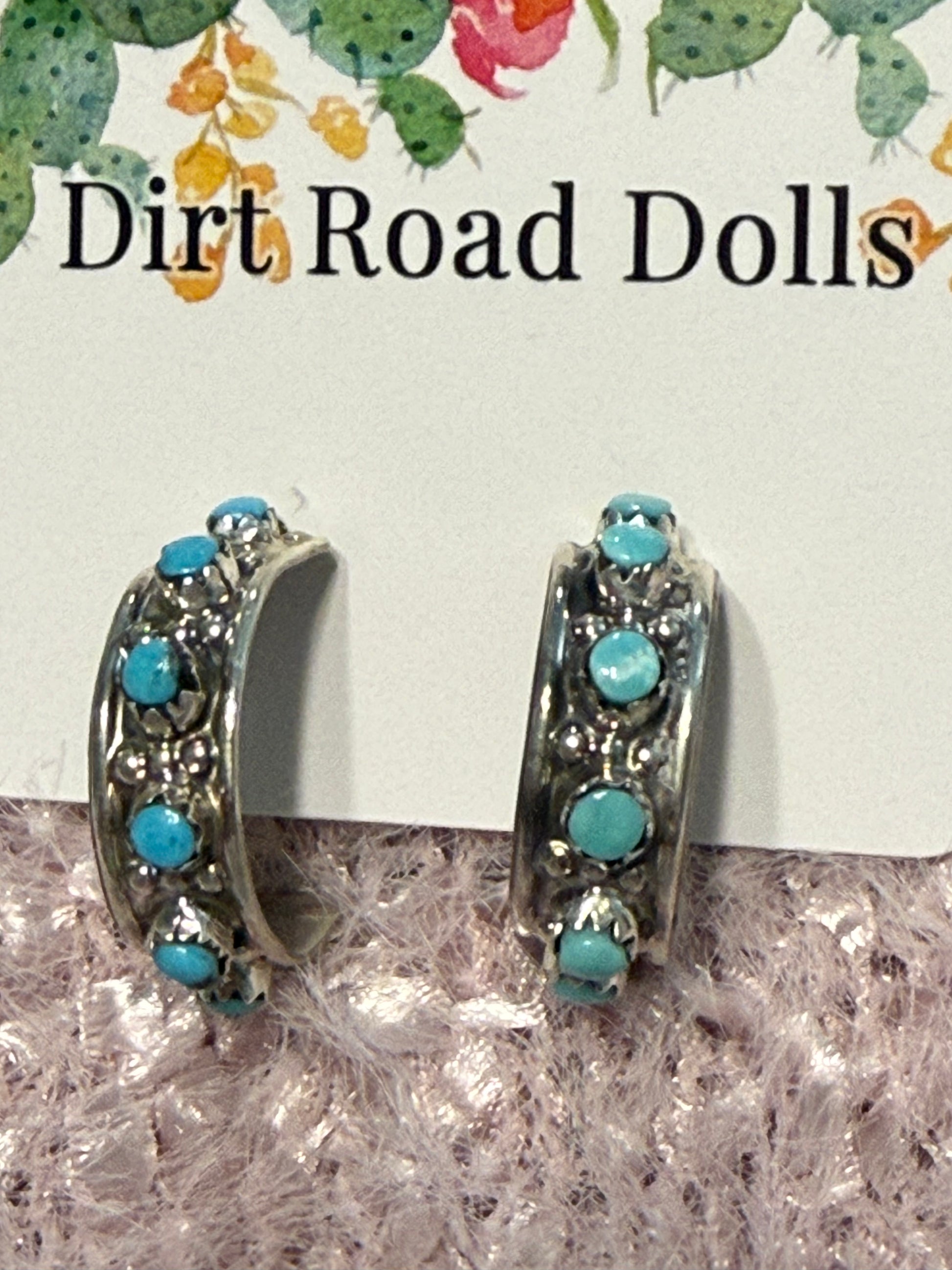 The Cascade Hoops are where craftsmanship and natural beauty meet. Handcrafted from sterling silver, each hoop showcases seven genuine turquoise stones — each one unique, with its own shade and character. The subtle natural color variation adds depth and authenticity, making every pair one-of-a-kind. Lightweight yet full of presence, these hoops bring that perfect Heirloom balance of timeless style and modern wearability.