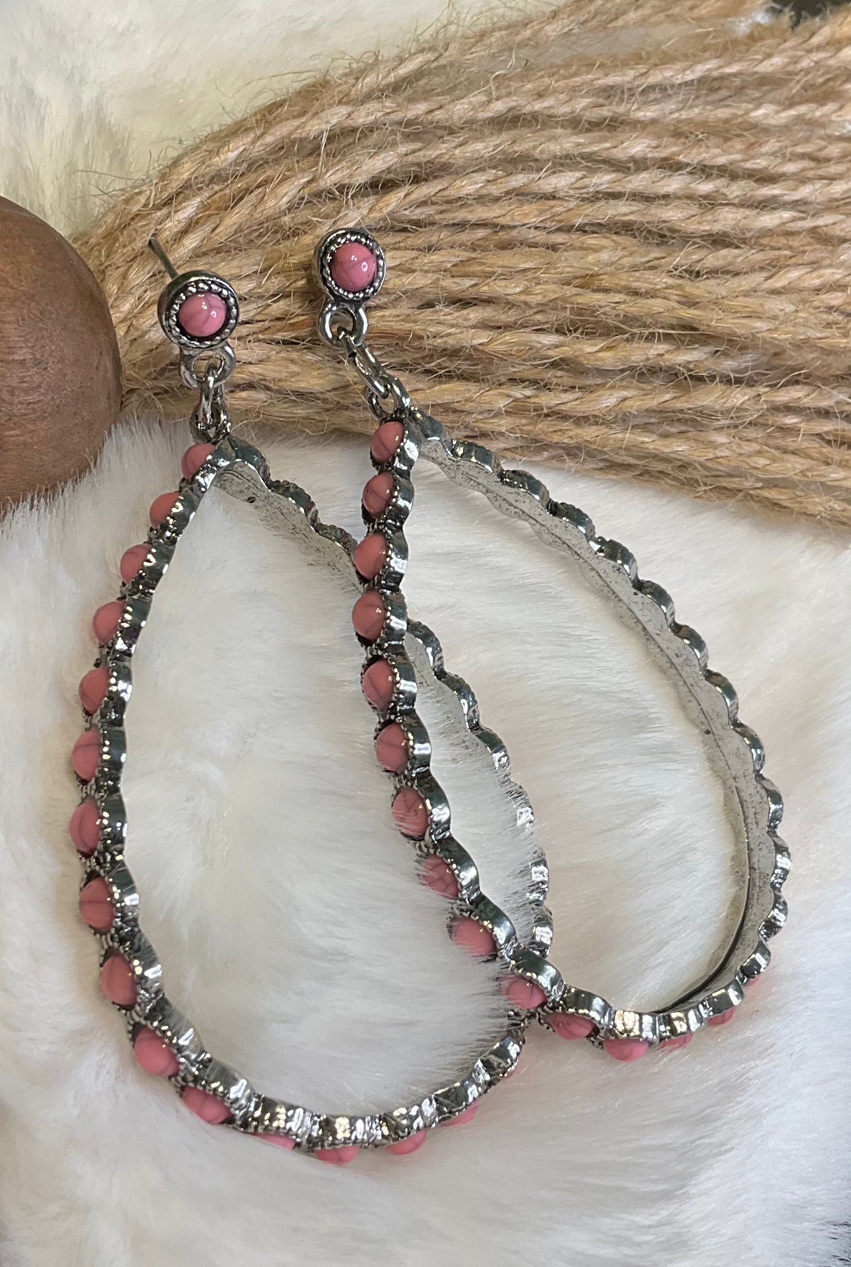 Make a bold impression with our Castle Rock Stone Teardrop Earrings. These faux silver post-back earrings feature an eye-catching teardrop design accented with your choice of pink, white, turquoise, or orange stones. Perfect for adding a pop of color, these earrings blend rustic charm with modern flair.