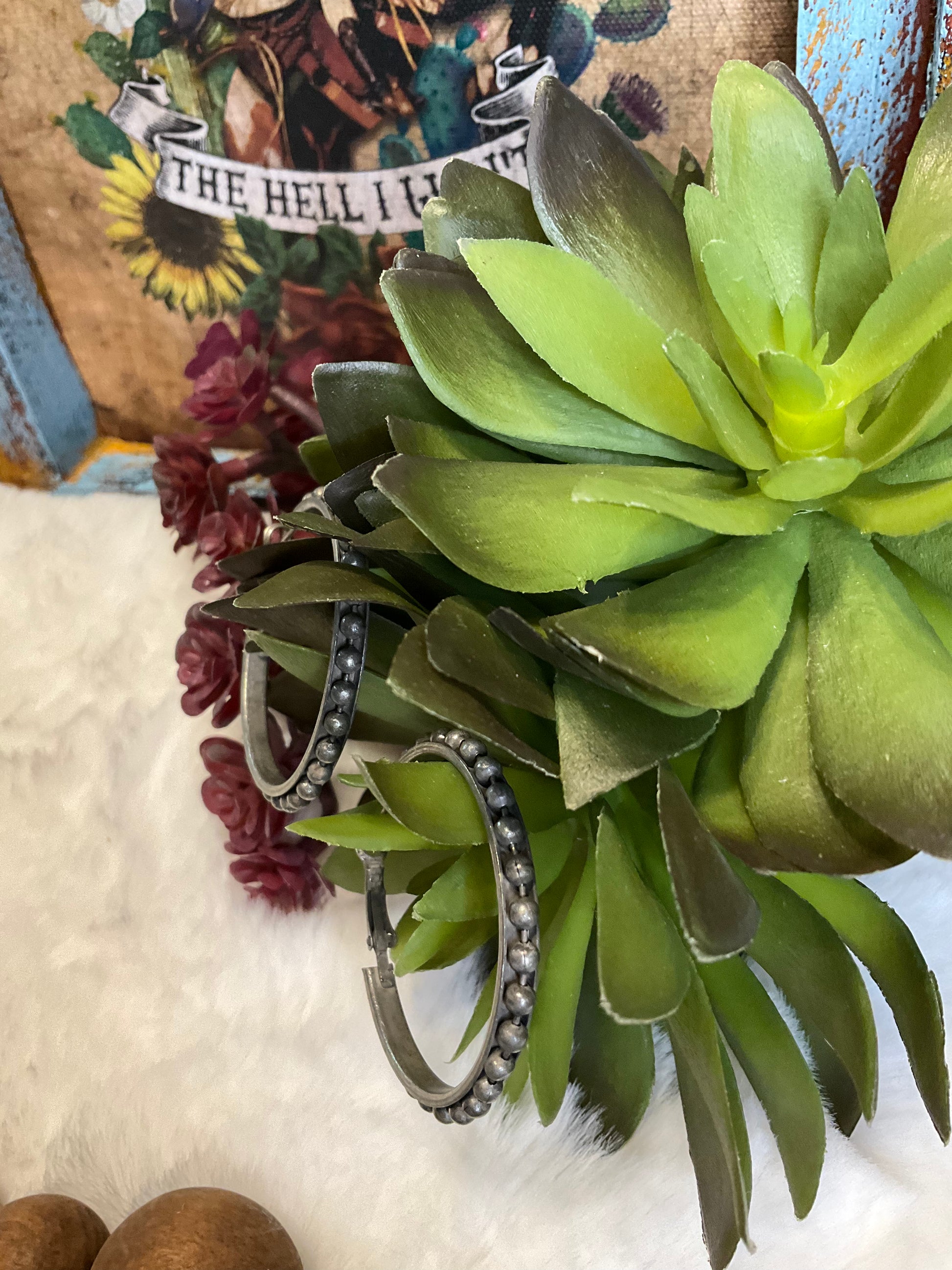 Introducing our Cowgirl Bead Earrings, the perfect accessory for any western-inspired outfit. These earrings feature a unique and stylish beaded design on a lightweight hoop, in your choice of copper or silver tone. Measuring at approximately 1.5", these earrings are sure to make a statement without weighing you down.
