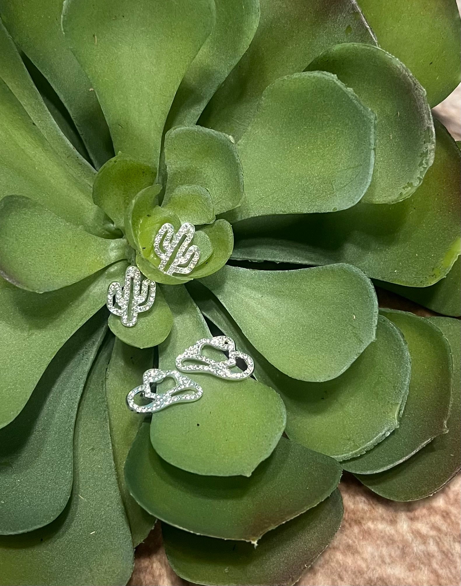 Get ready to light up the dance floor with these Disco Cowgirl Earrings! With a post back design and sparkling rhinestone pave, these earrings are a must-have for any cowgirl. Choose from a cowboy hat or cactus design for a playful and unique touch to your outfit. Yeehaw!