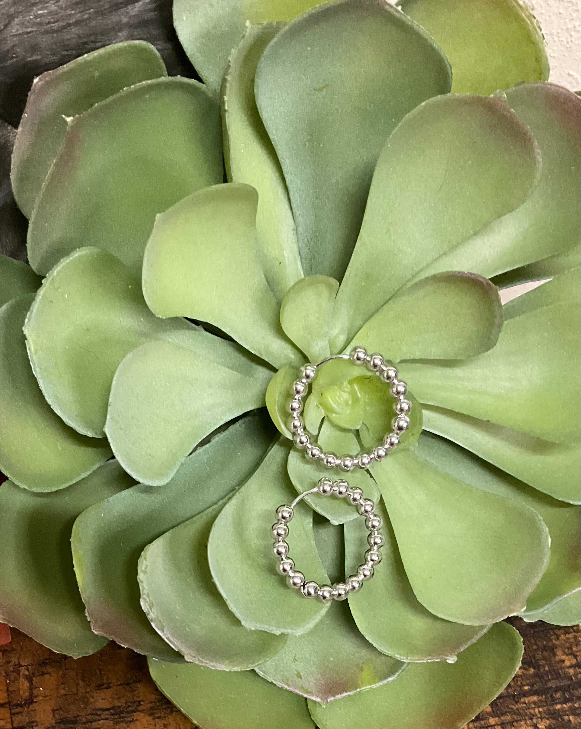 The Ever White Gold Dipped Hoops are your go-to for polished, everyday shine. With a subtle beaded texture and a 1" diameter, these beauties strike that perfect balance between dainty and bold. Crafted from a brass base and dipped in 14k white gold, they bring the look of luxe without the stress of price tags. Elegant enough for work, easygoing enough for weekend errands—basically, they go with everything but drama.