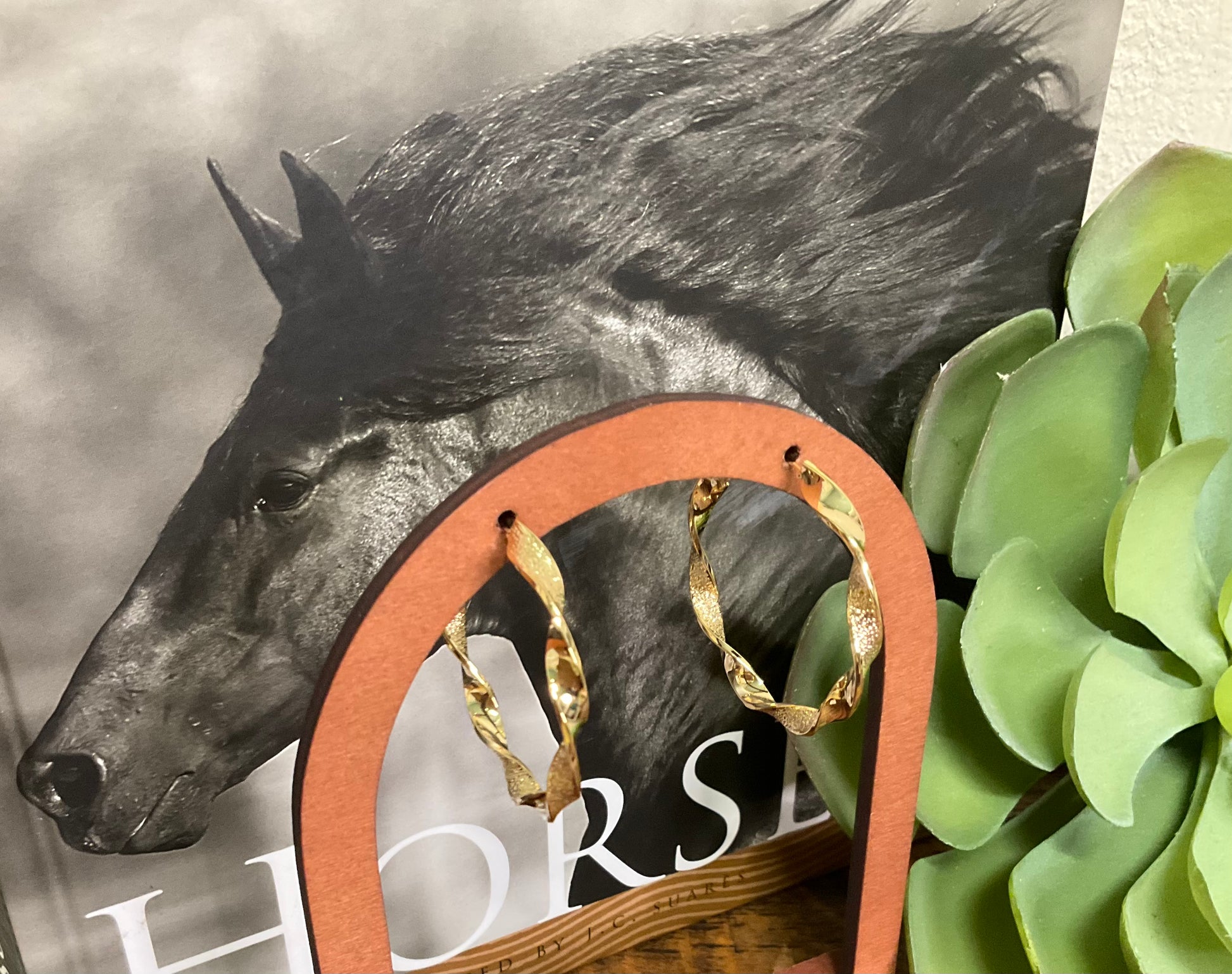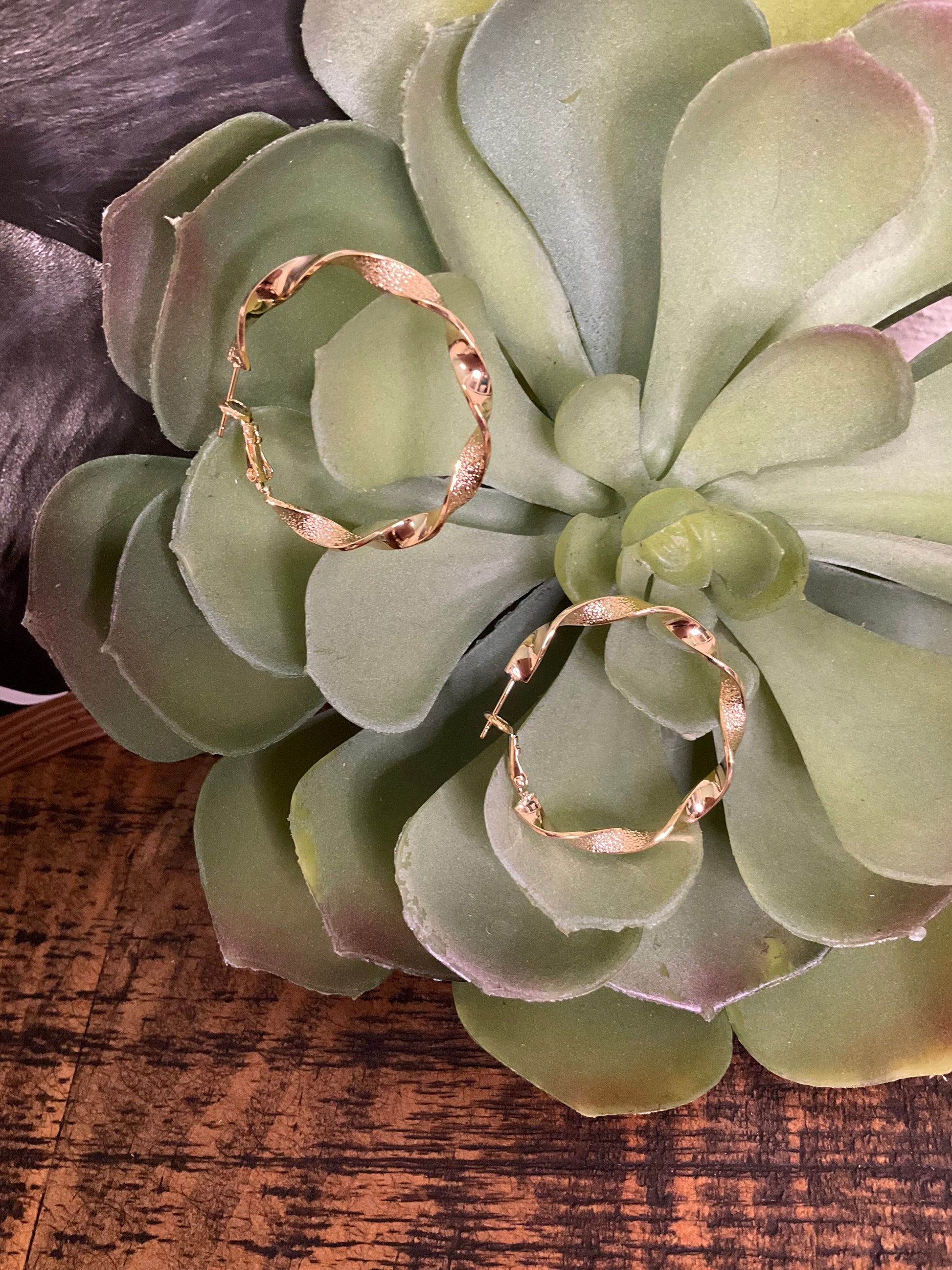 Gold Dust Woman Earrings – a little rock ‘n roll, a little refined. These gold-toned hoops measure approx. 1.75" and feature a twisted ribbon design with textured detailing that catches the light with every turn. Bold enough to stand alone, light enough for all-day wear—these earrings bring that “effortlessly cool” energy to anything you pair them with.
