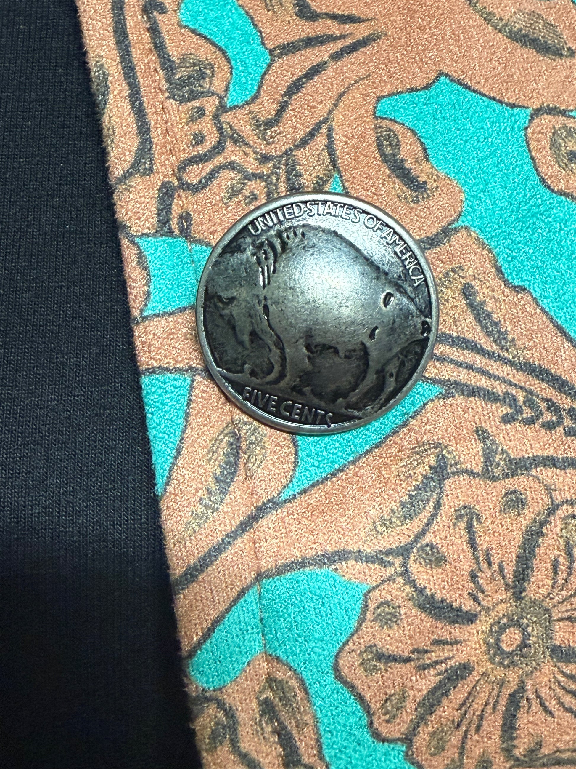 Faux buffalo nickel buttons add that polished, authentic finish… the kind that makes people assume you definitely know someone important behind the chutes.