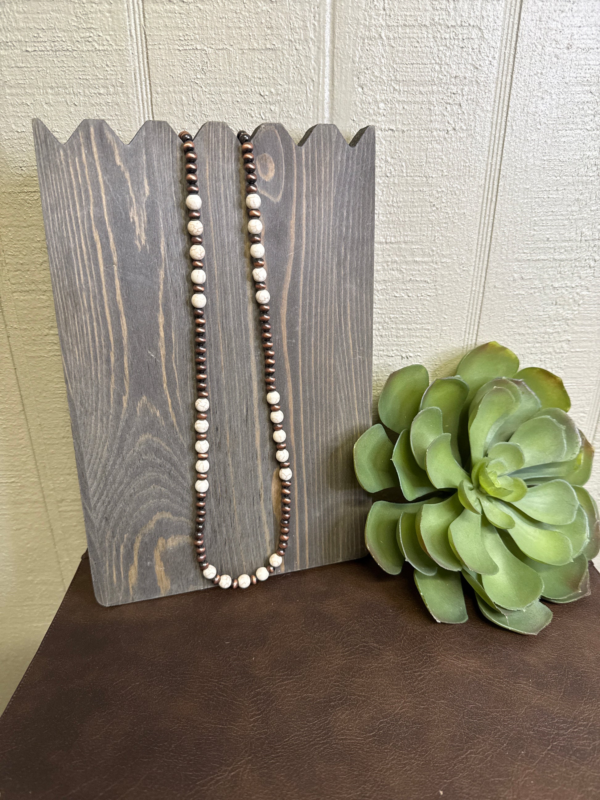 Copper-tone beads with larger white stone beads