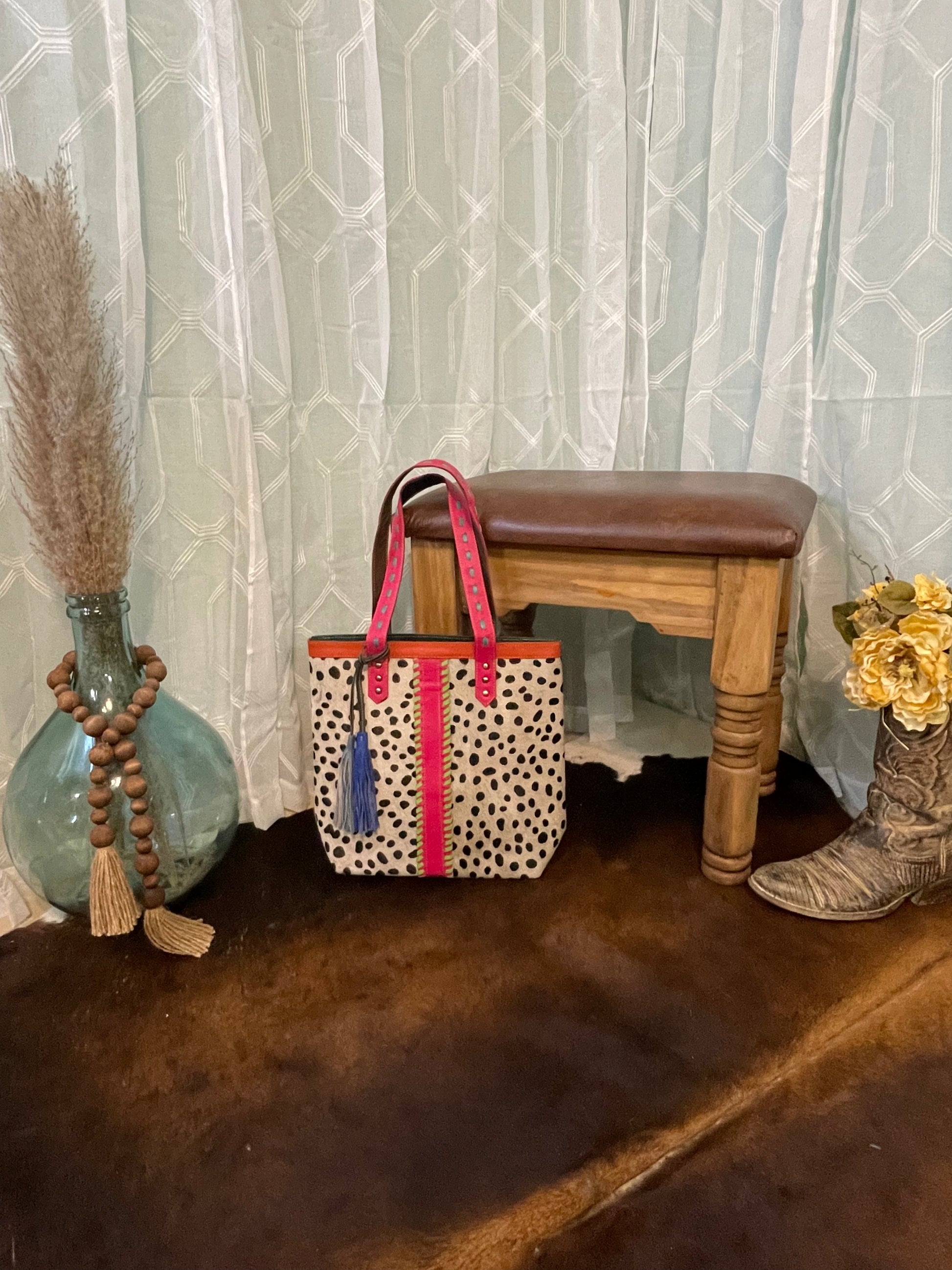 Unleash your individuality with the Kenji Tote! Made from upcycled leather and hair-on-hide, each tote is one of a kind, just like you. Embrace your unique style and make a statement with this one-of-a-kind bag.