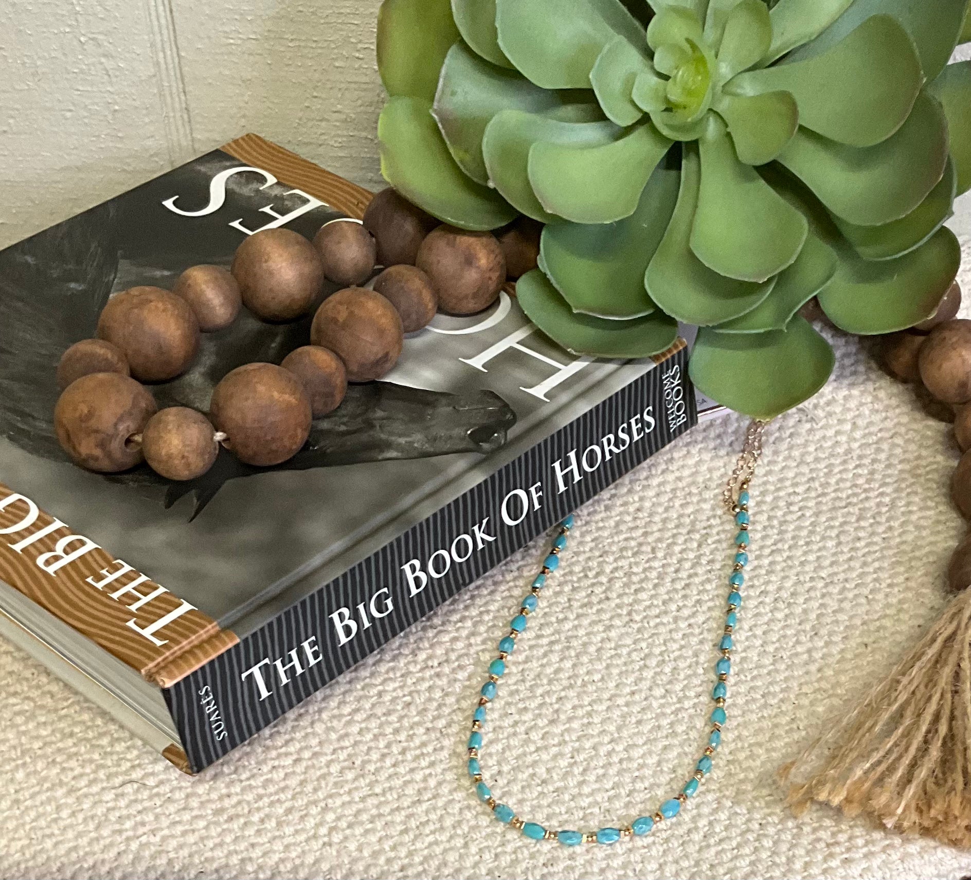 Margot Necklace ā she's soft glam with a hint of glow. This dreamy strand features iridescent turquoise-colored beads that shimmer with every turn, accented by delicate gold-toned details that bring just enough warmth and shine. At 16" with a 3" extender, Margot is made for layering but absolutely strong enough to stand alone.