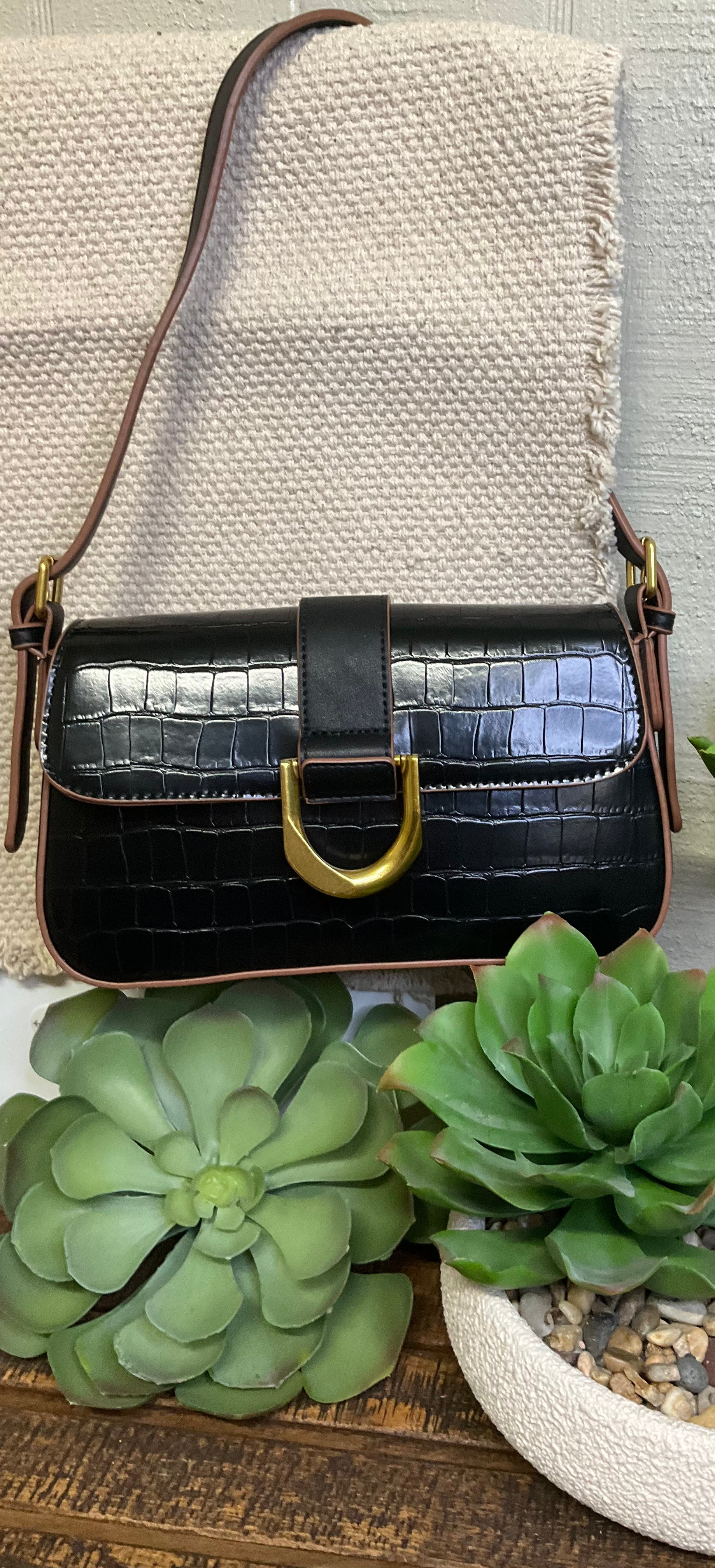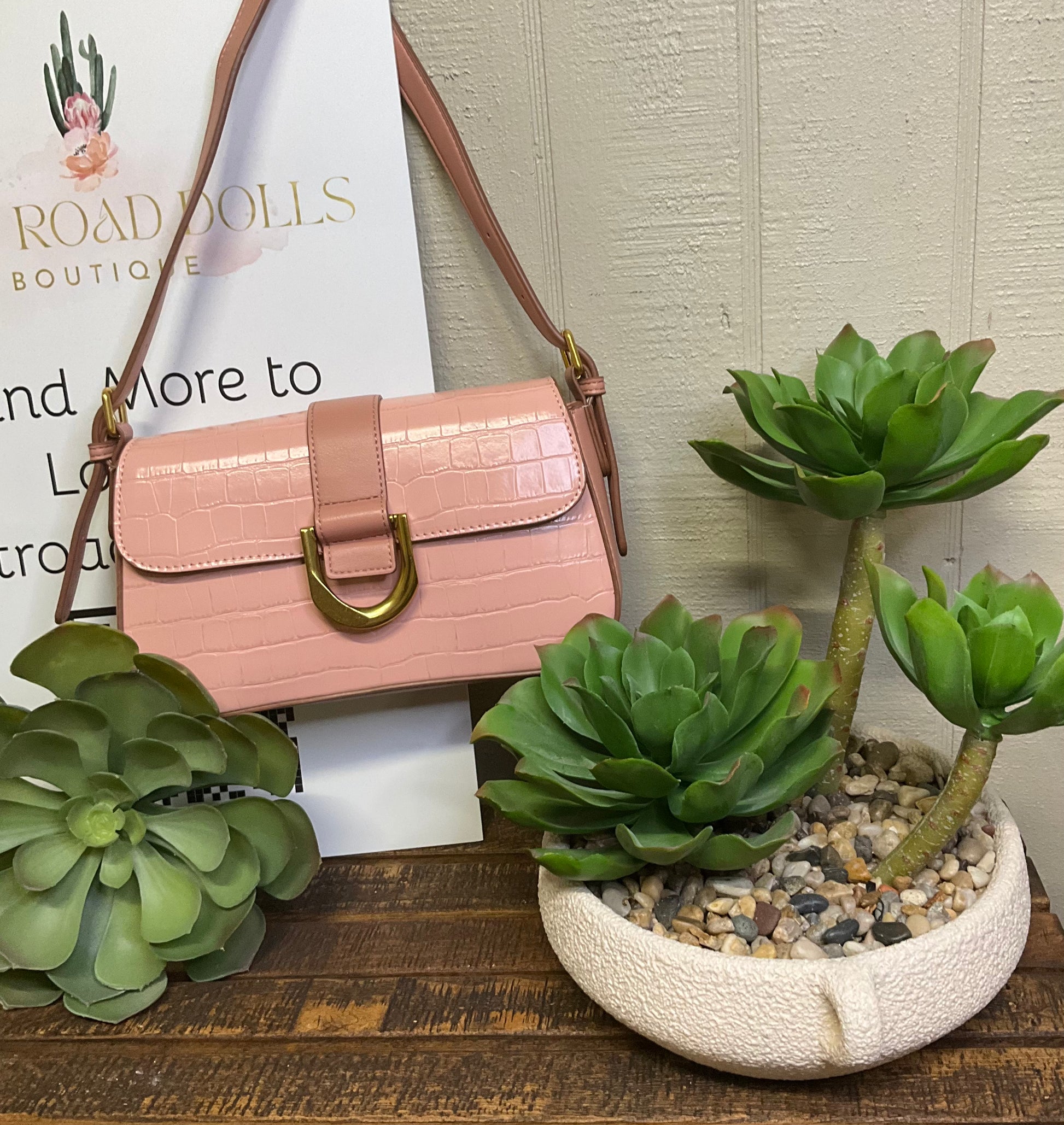 The Posh Crocodile Embossed Bag is all about sophisticated sass with a side of versatility. Crafted from high-quality vegan leather in a chic two-tone crocodile pattern, this satchel-style shoulder bag features a bold snap closure with a metal accent ring and a secure top zipper to keep your must-haves tucked in tight. Gold-tone hardware adds a polished finish, while the removable shoulder and adjustable crossbody straps give you styling power for any mood. Available in black, beige, or pink — because a gal needs options.