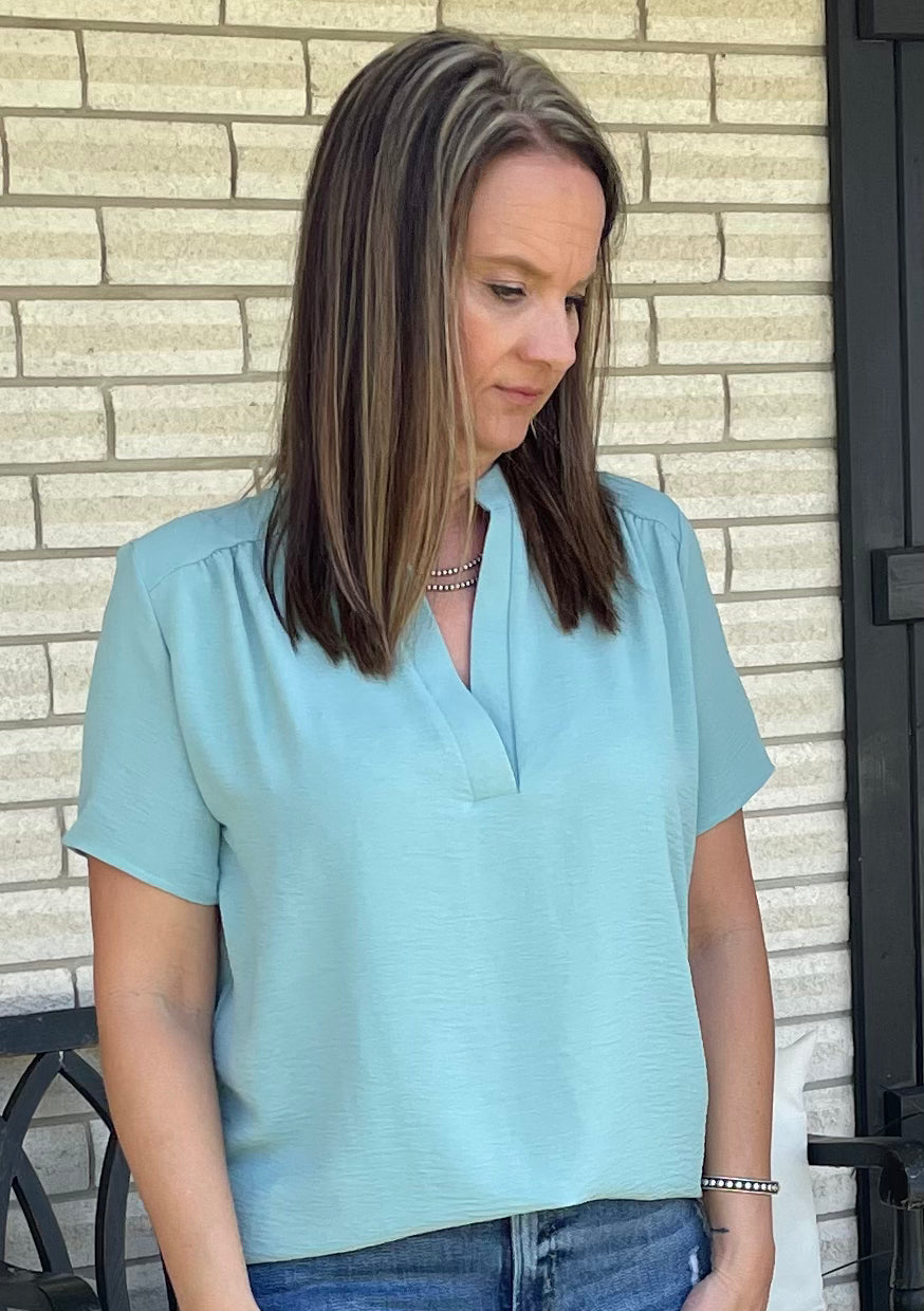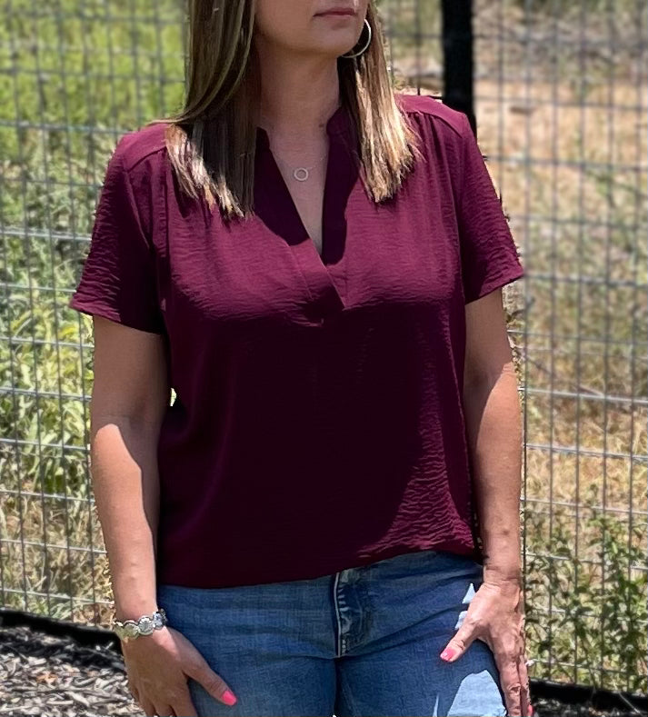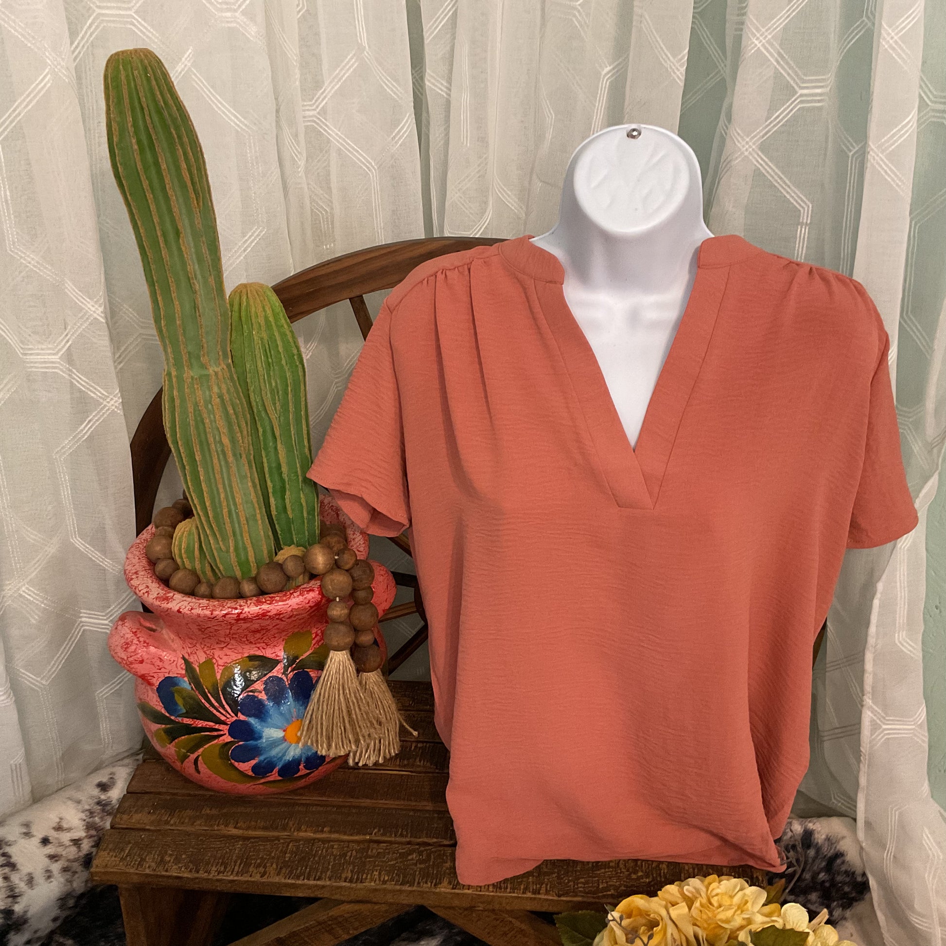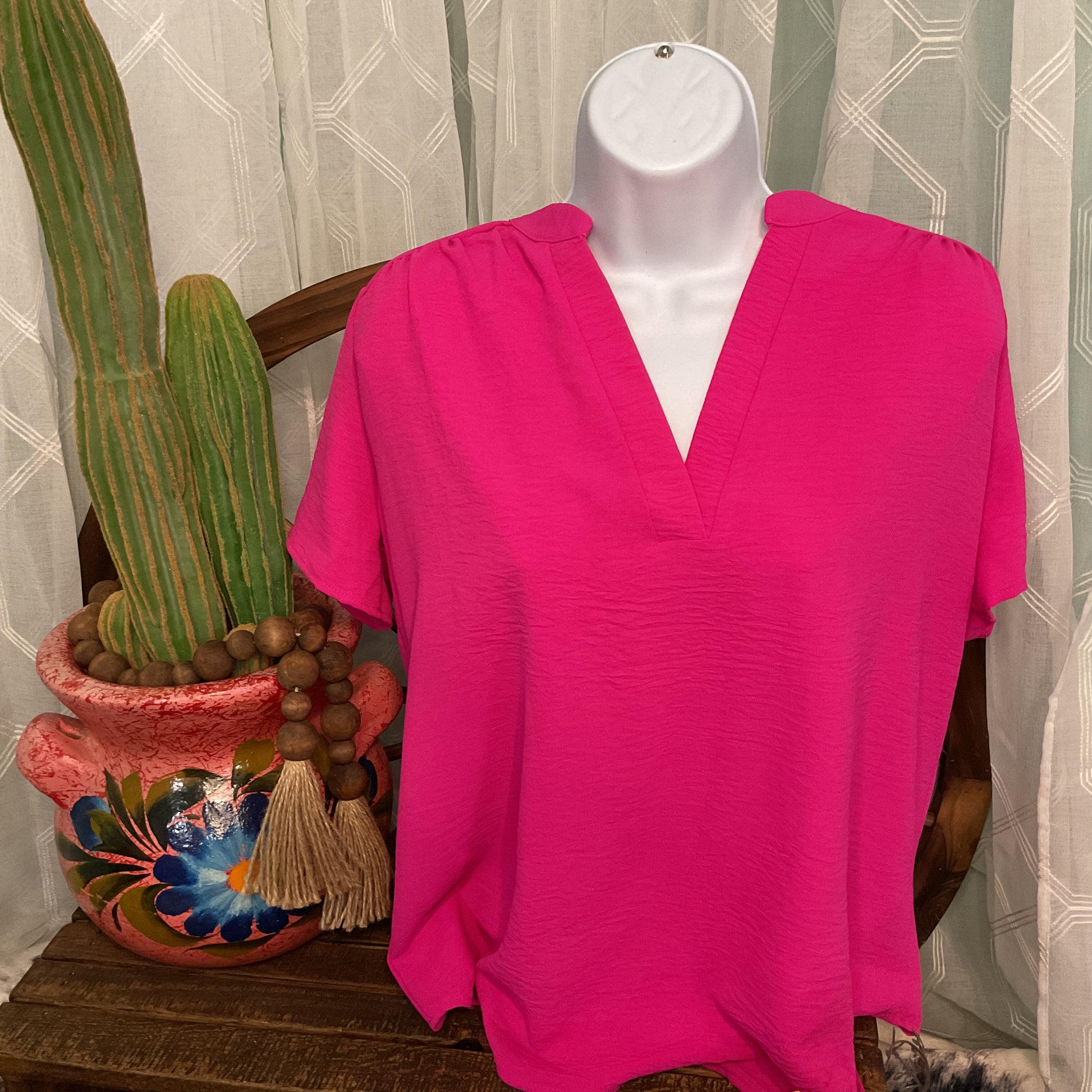 The Tina Top is a versatile and stylish addition to any wardrobe. With a solid v-neck placket and gathered detail at the shoulders, this top is perfect for any occasion. Made from a lightweight woven fabric, it is non-sheer and unlined, providing both comfort and style. Elevate your look with this must-have top!
