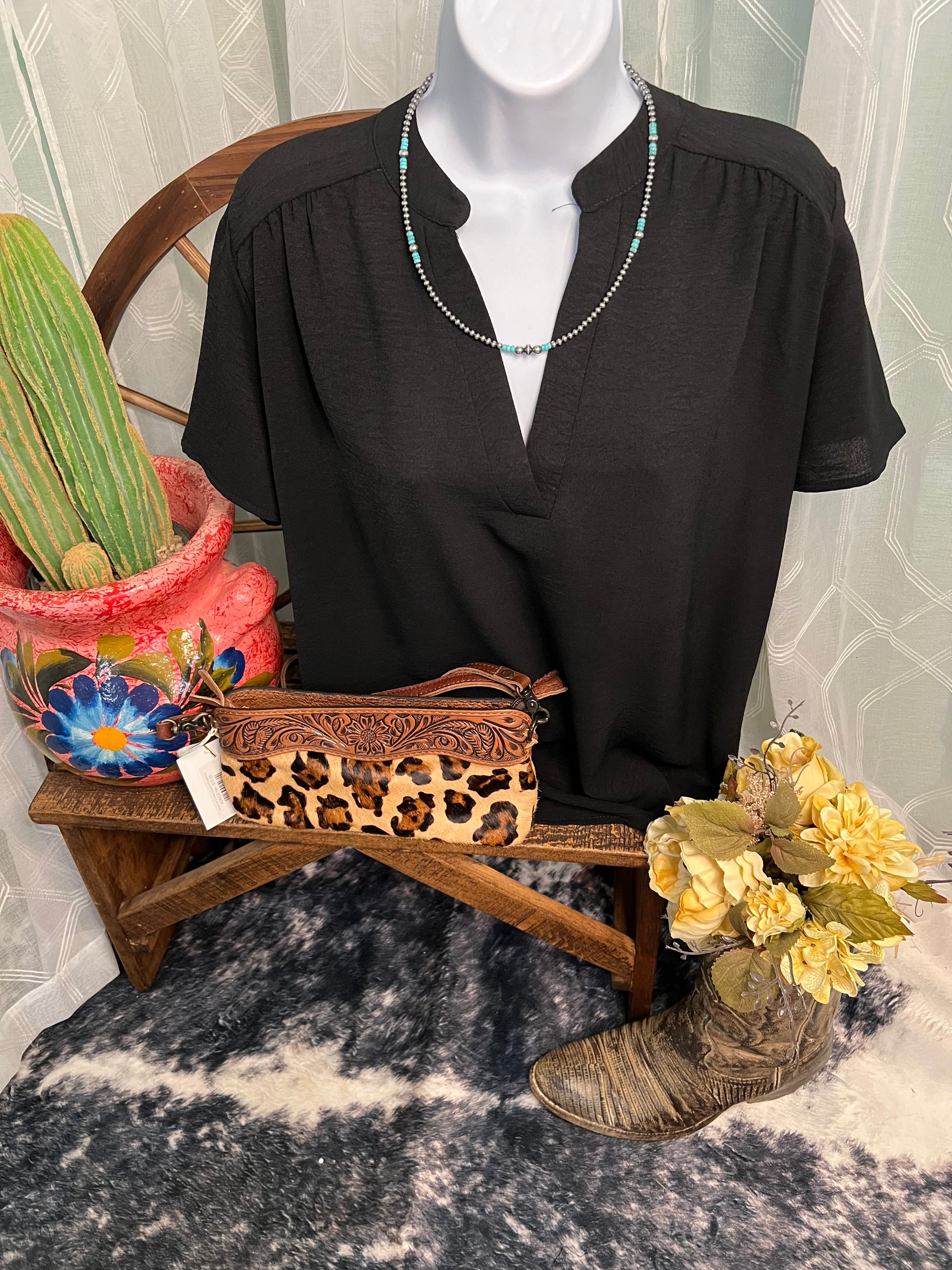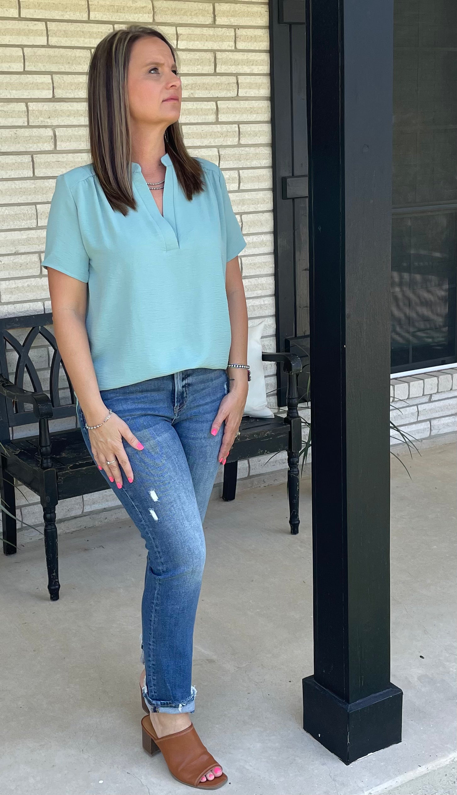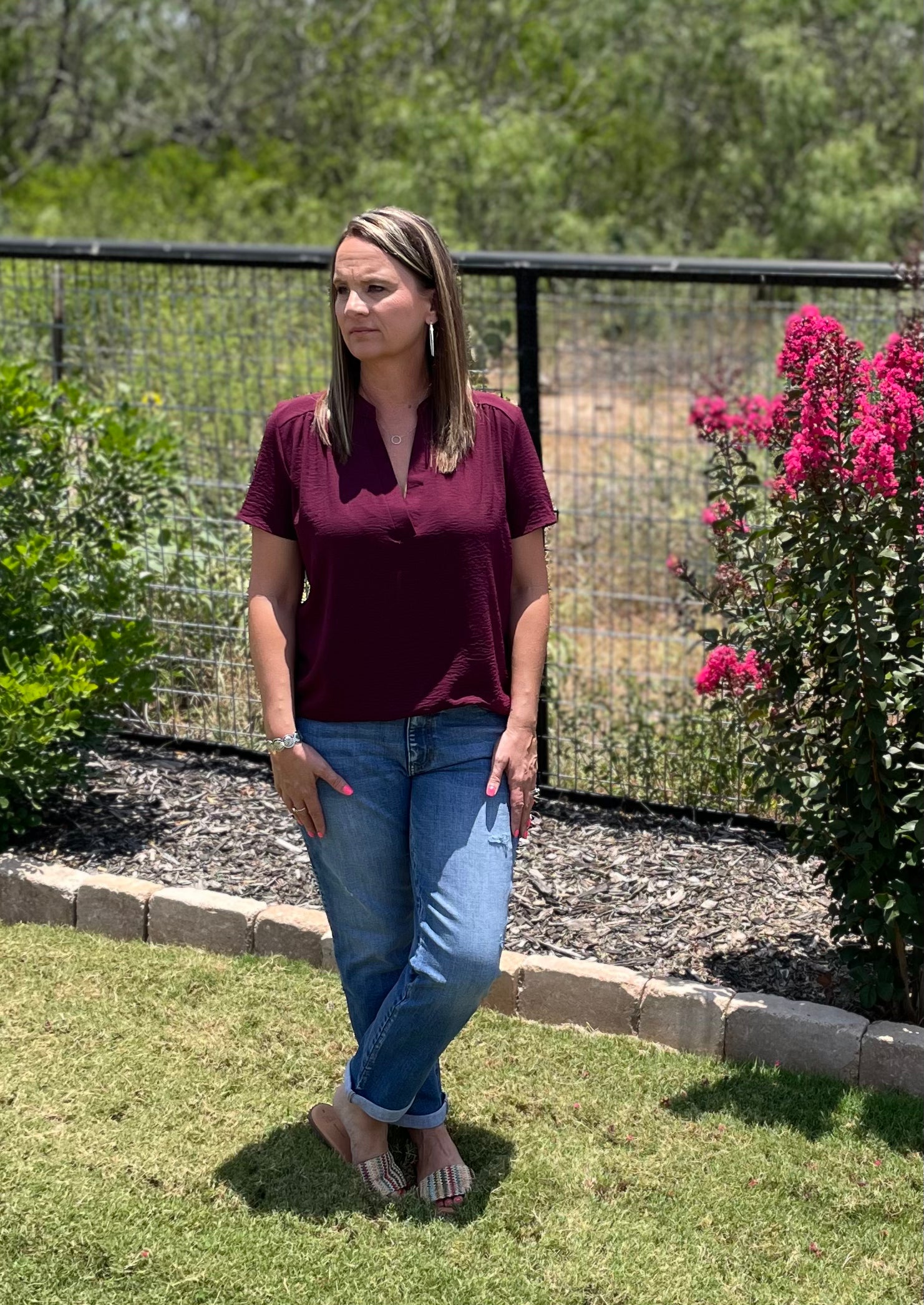The Tina Top is a versatile and stylish addition to any wardrobe. With a solid v-neck placket and gathered detail at the shoulders, this top is perfect for any occasion. Made from a lightweight woven fabric, it is non-sheer and unlined, providing both comfort and style. Elevate your look with this must-have top!